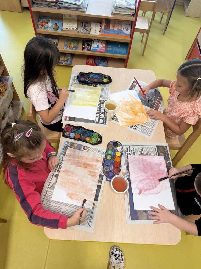 Trenutno istražujemo temu jeseni. Promatramo promjene u prirodi, prikupljamo jesenske plodove i stvaramo razne likovne radove nadahnute jesenskim bojama i motivima. Djeca istražuju, promatraju, razgovaraju i raspravljaju o svemu što jesen donosi.