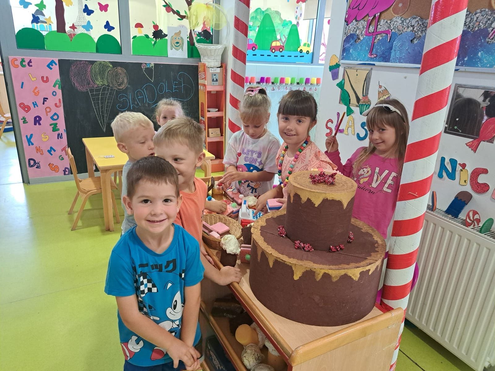 Tako u obiteljskom centru djeca imaju prave porculanske tanjure,sušilo za odjeću, pregačice , stolnjake, kolica za lutke, mnoštvo plišanaca.U građevnom centru svima su favorit Lego kocke ,svaka se kockica svakodnevno koristi za gradnju raznih građevinskih poduhvata.U likovnom centru je uvijek gužva, djeca tu crtaju,slikaju,modeliraju, rezuckaju.Trenutno su nam veliki hit bojanke-mandale, djeca se trude obojati unutar crte, a usput se lijepo zabave i relaksiraju.U stolno-manipulativnom centru slažemo puzzle, Memory sličice, a u društvenim igrama učimo kako primjereno slaviti pobjedu, ali i kako junački podnijeti poraz kad gubimo.Centar početnog čitanja i pisanja namijenjen je djeci predškolarcima, a i poneka mlađa djeca ovdje rado borave.Glavna su nam zanimacija , naravno, slova i brojevi- -stvaramo riječi od kartonskih slova , igramo tombolu brojeva, učimo brojalice.Imamo još dosta centara za igru u sobi dnevnog boravka(centar slikovnica,dramski centar, stolarski centar,…),ali najslađi nam se centar aktivnosti nalazi u predsoblju , a to je centar slastičarnice!